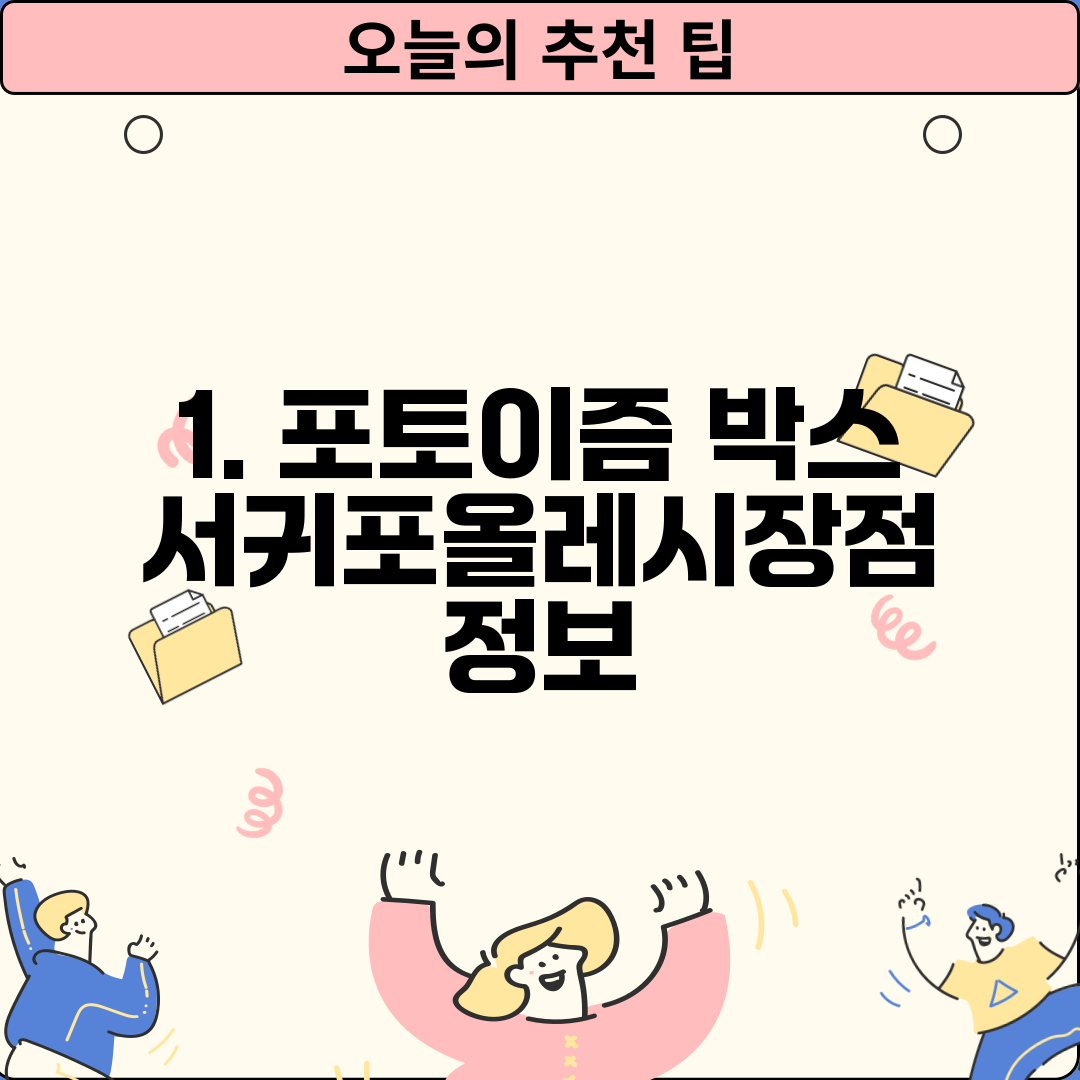 1. 포토이즘 박스 서귀포올레시장점 운영시간 및 위치, 전화번호 확인하세요!